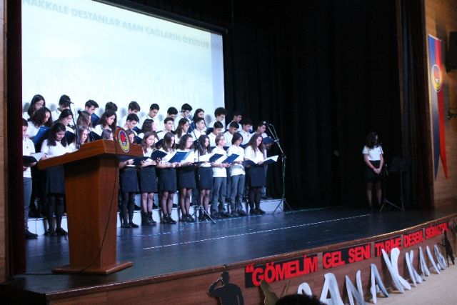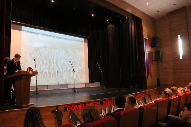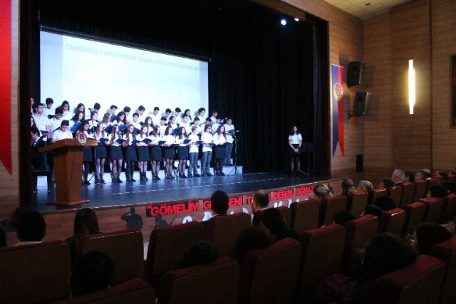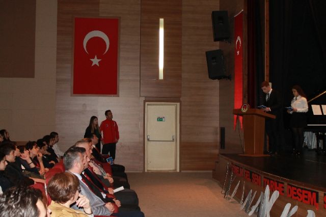 Şehitlerimize saygı duruşu ve ardından İstiklal Marşı’nın okunmasıyla başlayan törenimiz, Matematik Öğretmenimiz Nazmi Cüzdan’ın günün anlam ve önemini belirten konuşması