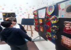 Görsel sanatlar dersinde 5. sınıf öğrencilerimizin, ders içi etkinliklerde yaptıkları çalışmalarla renklenen koridorlarımızı seyrederken diğer öğrencimizin çaldığı piyanoyla müzik ziyafeti yaşadık.