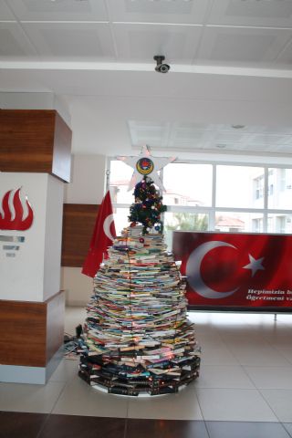 Bizim yılbaşı ağacımız kitaplardan. Bu anlamlı projede öğrenci, öğretmen ve velilerimizin desteğiyle bu yıl yılbaşı ağacımızı kitaplardan oluşturduk. Projemizin sonunda k