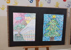 İlkokul öğrencilerimizden Emir DUYMAZ, Zeynep BEŞLER, Doğa BOZKURT, Gökçe ET, Zeren TURHAN, Nara TOPRAK, Emre DOLAPCIOĞLU, Zeyna KÖR, Tahir EZER, Poyraz KOYUNCUOĞLU, Eliz Öykü EDİPOĞLU yapmış oldukları nokta-çizgi çalışmalarını bizlerle paylaştılar. Diğer öğrencilerimize de iyi bir örnek olarak ilk karma resim sergilerini açtılar. Cesaretlerinden dolayı çok teşekkür ediyor, sanat ve diğer alanlardaki başarılarının devamını diliyoruz.