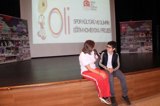 Sunumlar boyunca öğrenciler, projenin sunucusu Sibel TEL tarafından kendilerine yöneltilen Olimpiyatlar ve Olimpik spor dallarıyla ilgili sorularda parmaklarını havadan indirmezken doğru cevapları vermek ve sürpriz hediyeleri kazanmak için birbirleriyle yarıştılar. Programın son dakikalarında sahneye çıkan ve projeye de adını veren maskot OLİ, müzik eşliğinde tüm salona coşku dolu anlar yaşatarak çocukların ilgi odağı olmayı başardı.