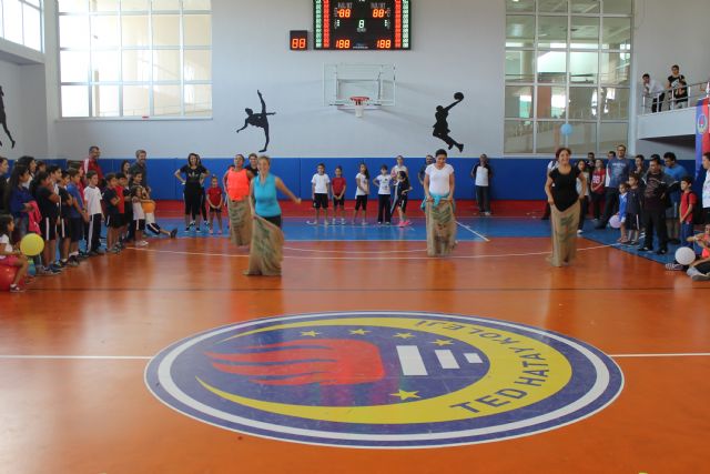 TED Hatay Koleji 4.geleneksel spor şenliği,okulumuz spor salonunda öğrenci,velilerimiz,idareci ve öğretmenlerimizin katılımıyla gerçekleşti.Spor şenliğimiz öğretmen,veli ve öğrenci kaynaşmasını arttırmanın yanında sporun yaşamımızın bir parçası olduğuna dikkat çekerek eğlenceli zaman geçirmemizi sağladı.Şenlikte ısınma hareketlerinden sonra öğrenci,veli ve öğretmenlerimizin katıldığı koordinasyon parkuru tamamlama,sek sek,çuval yarışı,halat çekme,kuçuçi dansı,balon patlatma,karton kapmaca gibi aktivitelerle şenliğimiz eğlenceli ve coşkulu bir şekilde gerçekleşti.