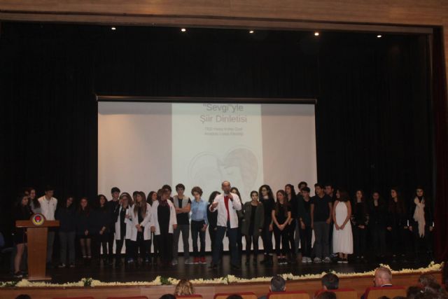 Lise edebiyat zümresinin yürüttüğü etkinlikler kapsamında, öğrencilerimiz sevginin tüm renklerinin (anne, vatan, arkadaş, doğa…) Türk ve dünya edebiyatından şiirlerle dil