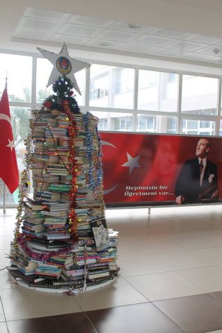 TED Hatay Koleji bir sosyal sorumluluk projesine daha imza attı. Bizim yılbaşı ağacımız “kitap”tan. Ağacı oluşturan bu kitaplarımız Şanlıurfa Siverek’te bulunan Şehit Nec