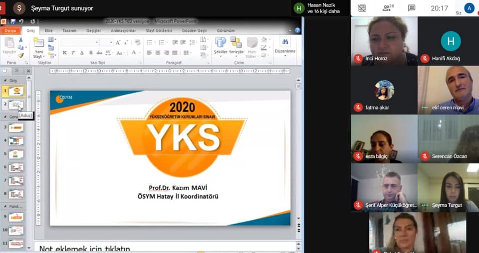 TED Hatay Koleji ailesi olarak heyecanla başladığımız okulumuzda güvenli mesafe kuralları dikkate alınarak okulumuzun kültür salonunda tüm öğretmenlerimizin katılımıyla bir toplantı düzenlendi. Yeni eğitim öğretim yılına ve uzaktan öğretim sürecine yönelik açıklamalarıyla TED Hatay Koleji Yönetim Kurulu Başkanı ve Kurucu Temsilcisi Prof. Dr. Sayın Mustafa Özat konuşmasını gerçekleştirdi. Uzun yıllar okulumuzda görev alan, emekliliği sebebiyle okulumuzdan ayrılan Sınıf Öğretmeni Sayın Suna Aldatmaz’a Kurucumuz Prof. Dr. Mustafa Özat tarafından teşekkür plaketi takdim edildi. Okulumuzun doktoru Sayın Vasfi Öztanır’ın Covid-19 riskine karşı yapılması gerekenleri anlattığı sunum ilgiyle takip edildi. Ardından TED Hatay Koleji Genel Koordinatörü Sayın Kenan Efe tarafından yeni eğitim öğretim yılına dair bilgilendirmeler ve öğretmenlerimiz için geliştirici hizmet içi eğitimler verildi. İlkokul Müdür Yardımcısı Sayın Yıldız Korkmaz’ın TED Hatay Koleji Covid-19 Faaliyet Raporu ve önümüzdeki süreçle ilgili bilgilendirme yapmasıyla toplantı tamamlandı. TED Hatay Koleji olarak 2020-2021 eğitim öğretim yılına hazırız!